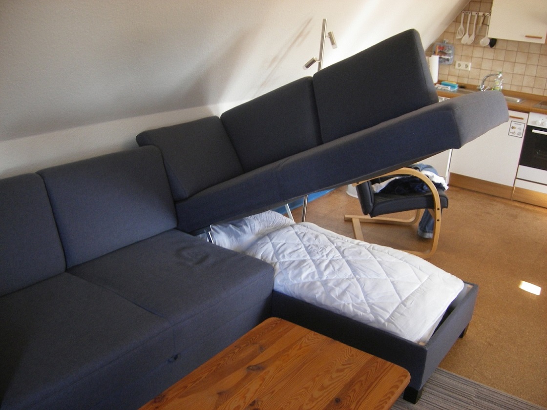 Zusätzliches Bettzeug finden Sie, indem Sie das Seitenteil hochklappen.
