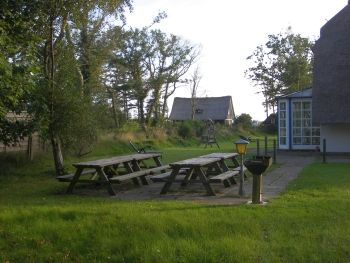 Eine Veranda zur Küche und viel Platz zum Sitzen und Grillen auf dem Hof.